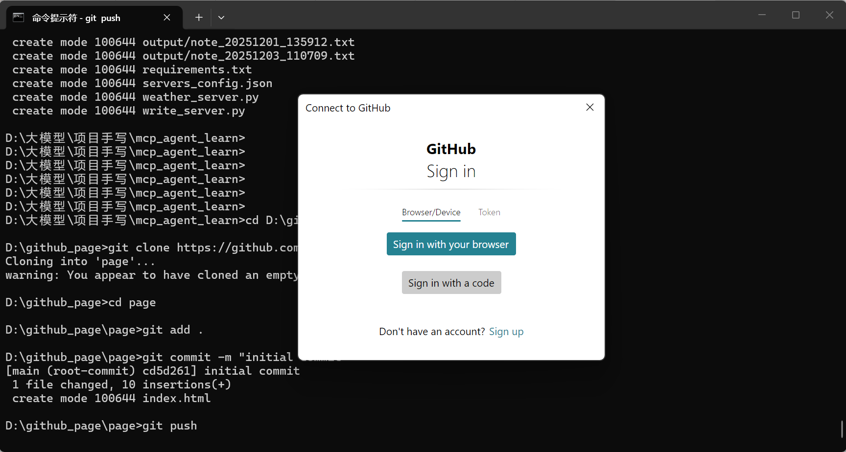 直接在本地page目录下更新网站内容后,运行cmd执行框,重复上面的add/commit/push命令即可: