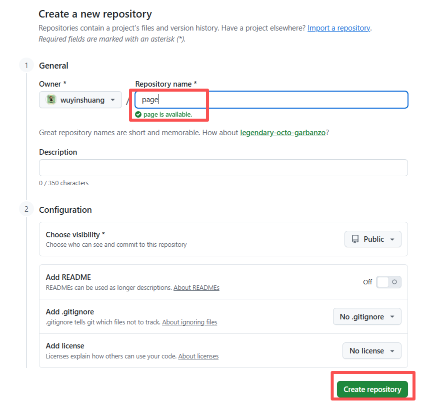 1.2 点击create a new repository,创建新的仓库,假设仓库名为page。