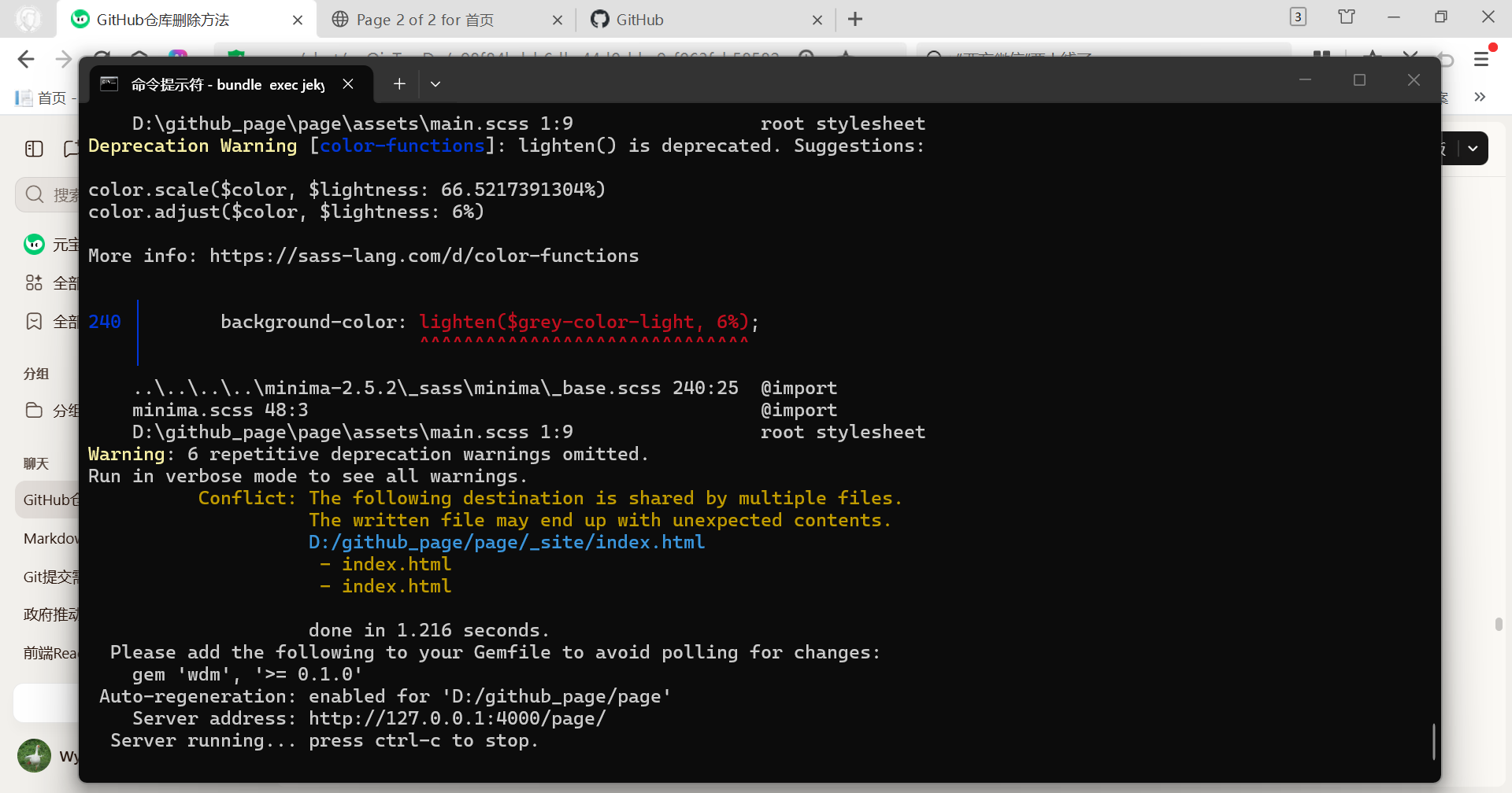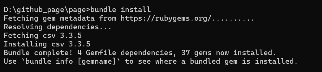 3.初始化 Bundler,进入你的博客项目根目录(比如 D:\github_page\page),执行以下命令: